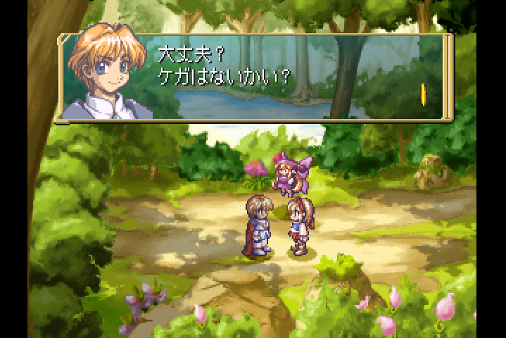 王子と会話できずに落ち込んでいたコルネットをクルルが励ます。 とりあえず王子の情報を集めに町に出かけことに。 家を出る前にお爺さんに話しかけると赤いイノチウムを渡す。 これからは人形が戦闘不能になった場合はお爺さんに話しかけると 修理して、復活することができる。金額は人形のレベルと比例する。 アイテム欄に赤いイノチウムはないので特に気にする必要はない。 実はお爺さんに話しかけなくてもストーリーを進めることができる。 ワールドマップに出てマザーグリーンへ行く。